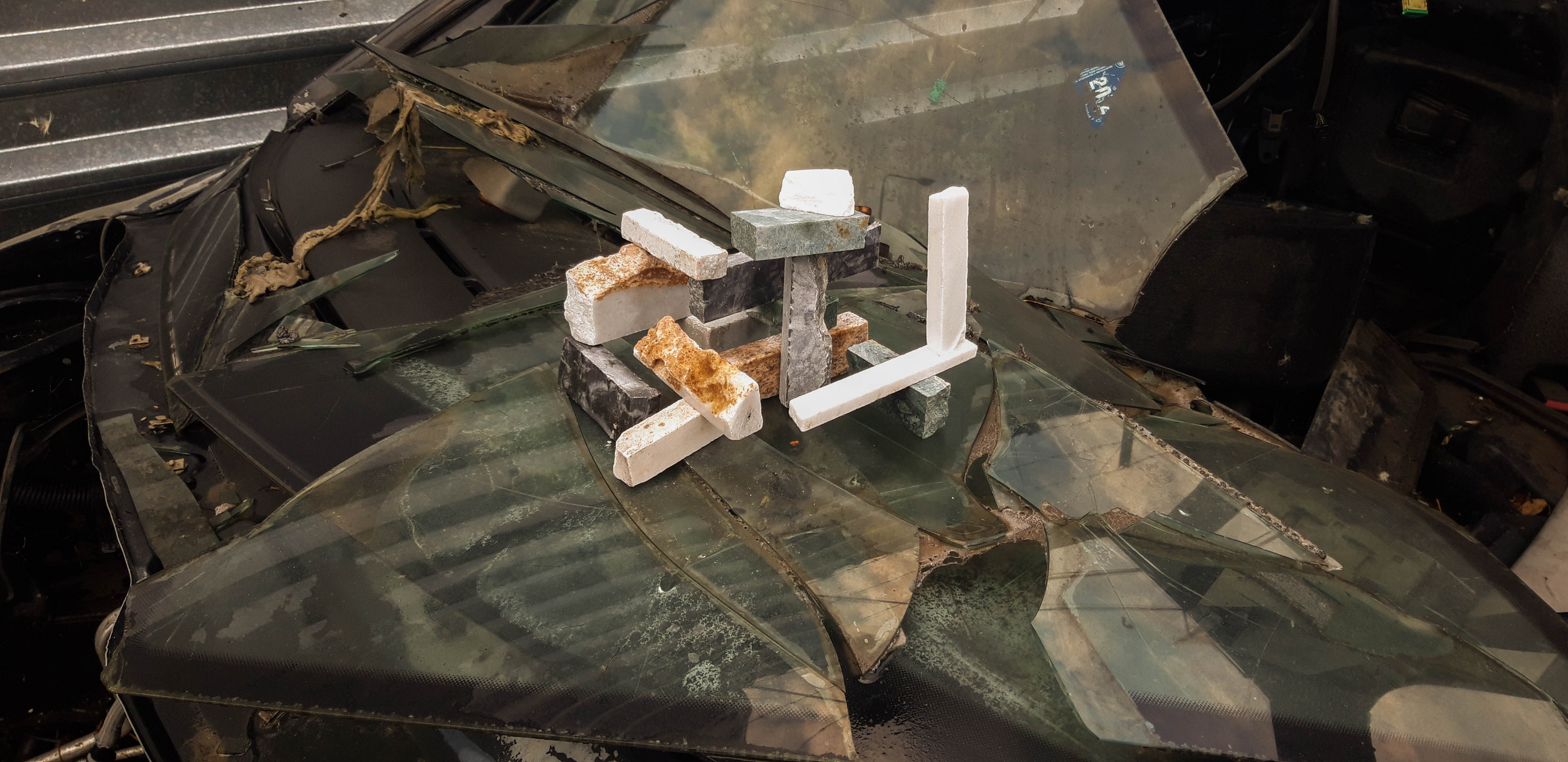 - The Taxi: A marble sentinel placed among the skeletal remains of dumped cars in a forgotten backyard.